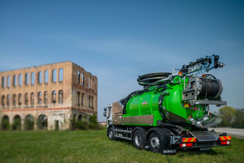 Mechanical transmission to control the high pressure pump and the vacuum pump either independently or at the same time by means of the truck’s own PTO or CAPPELLOTTO’s “CAP PTO”.