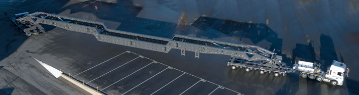The GirderMAX from Faymonville is a girder bridge to transport super heavy loads at legal axle loads on public roads. The inside dimension is steplessly widenable within seconds from 2,850mm to 7,950mm.
